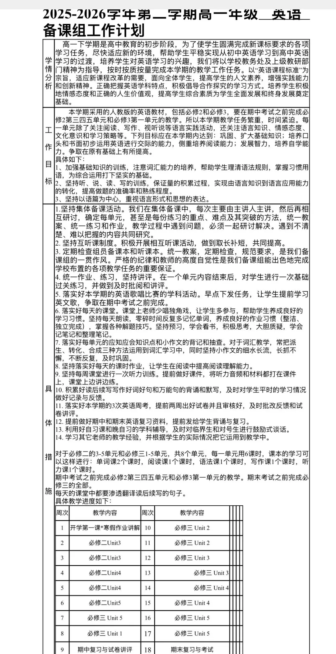 8.提前做好期中和期末英语复习资料,提前发给学生背诵与复习。