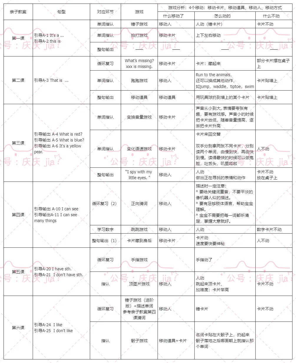 Susan新粉八大内容⑥:亲子教案1-5,游戏分析