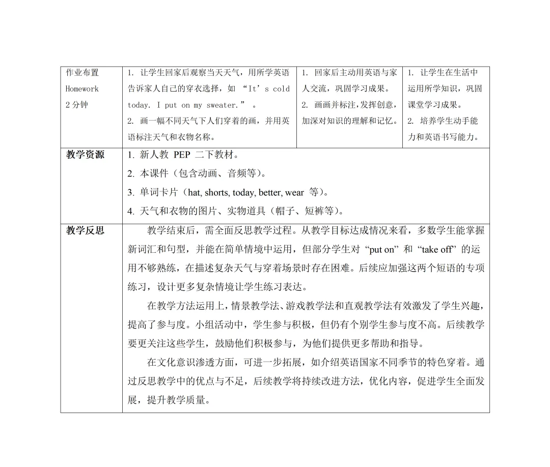 新改版 英语二年级下册教案含反思+课件(人教pep版26春)