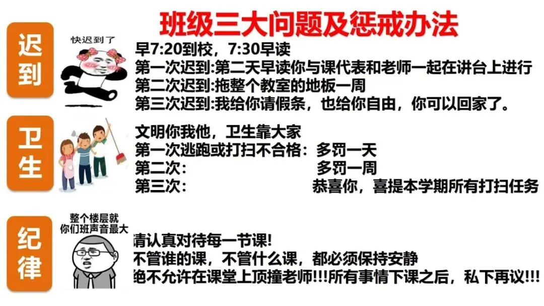 ✅ 班规明确惩戒有度:三条红线、三大不允许,纪律严明又带点幽默,学生听得进去!