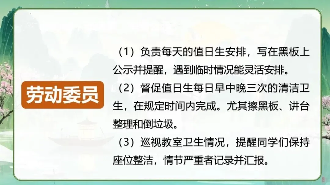 ✅ 班干部职责精细化:从班长到课代表,每项职责清晰公示,选拔管理不再头疼。