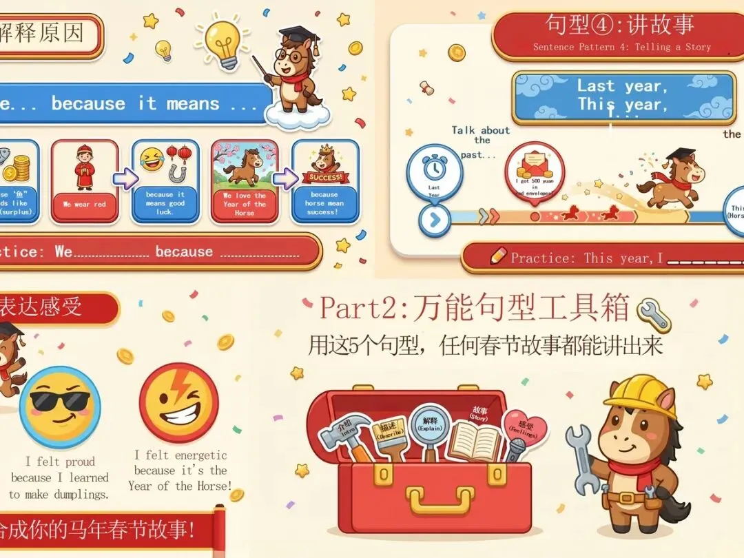 三十页精美PPT课件,图文并茂呈现春节主题英语学习内容。以"用英语讲述我的中国年"为核心主题,将春节元素与英语学习完美结合。