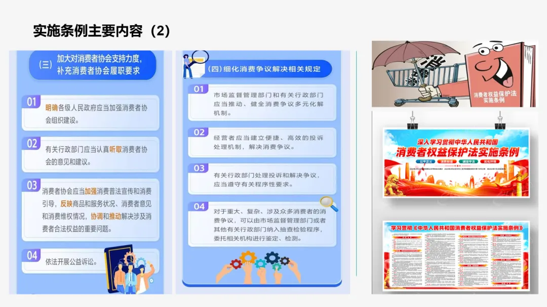 对消费者:要增强自我保护意识和证据意识,在消费过程中,主动索要购物凭证、发票等相关证据,妥善保管聊天记录、商品照片等材料;了解《消保法》及《实施条例》的相关规定,明确自身的法定权利;遇到消费纠纷时,及时通过合法途径维权,善用12315投诉举报平台、消协调解等便捷渠道,不要忍气吞声,也不要采取恶意索赔等违法方式维权。