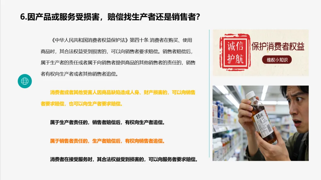6.因产品或服务受损害,赔偿找生产者还是销售者?
