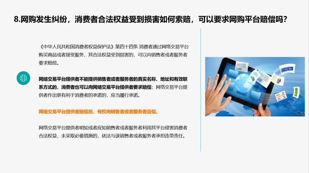 8.网购发生纠纷,消费者合法权益受到损害如何索赔,可以要求网购平台赔偿吗?