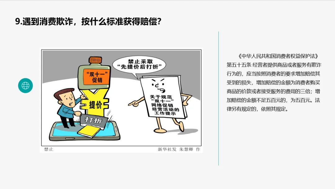9.遇到消费欺诈,按什么标准获得赔偿?