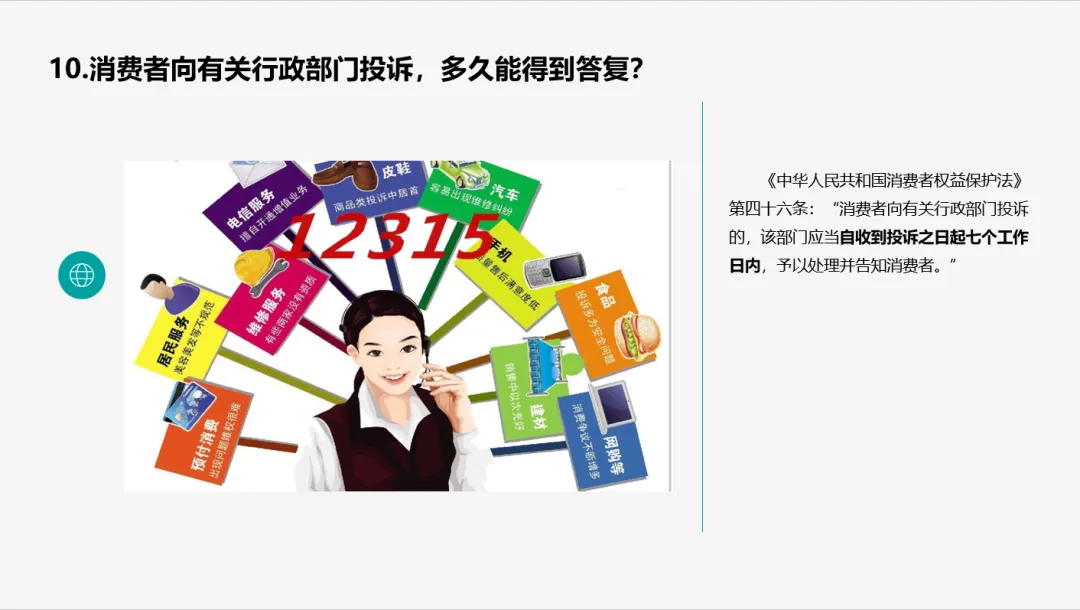 《消费者权益保护法》与我们每个人的生活息息相关,因此,有必要了解消费者日常维权的基本法规和消费者权益保护的相关知识,提高维权意识,当遇到问题时,能运用好法律手段,保护好自己和他人的合法权益,为维护社会经济秩序稳定,促进社会主义市场经济健康发展贡献力量。