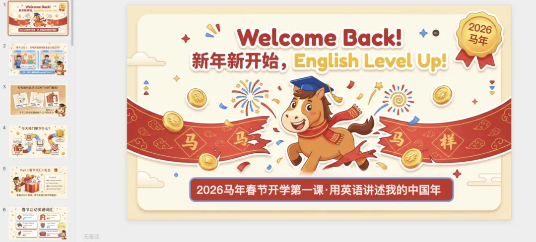今日分享:2026马力全开《马年主题开学第一课》课件PPT(开学班会/家长会/Word教案讲稿/开学快闪/开学收心/校规班规/演讲稿/班会/附送Word教案)。建议老师收藏!