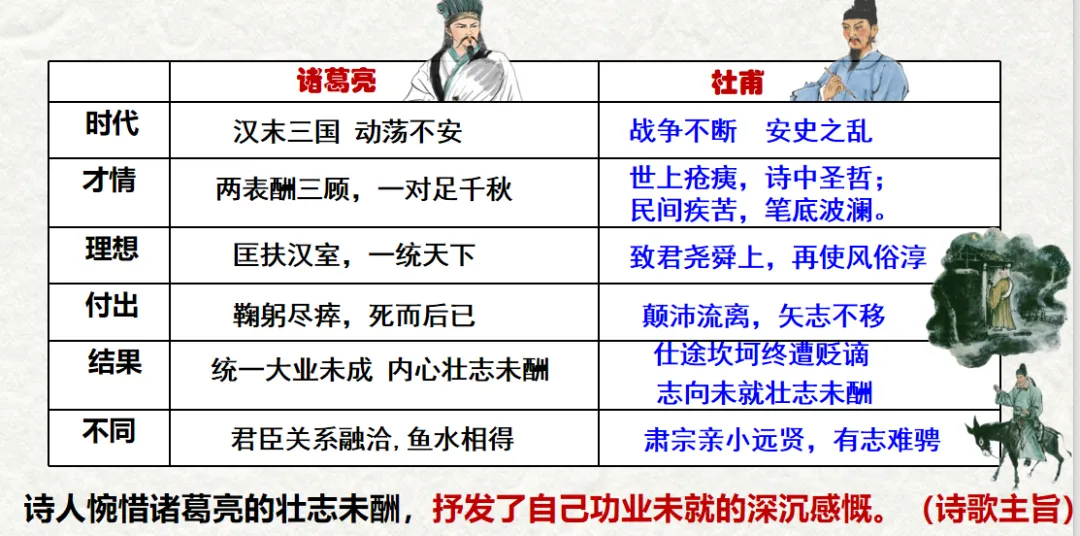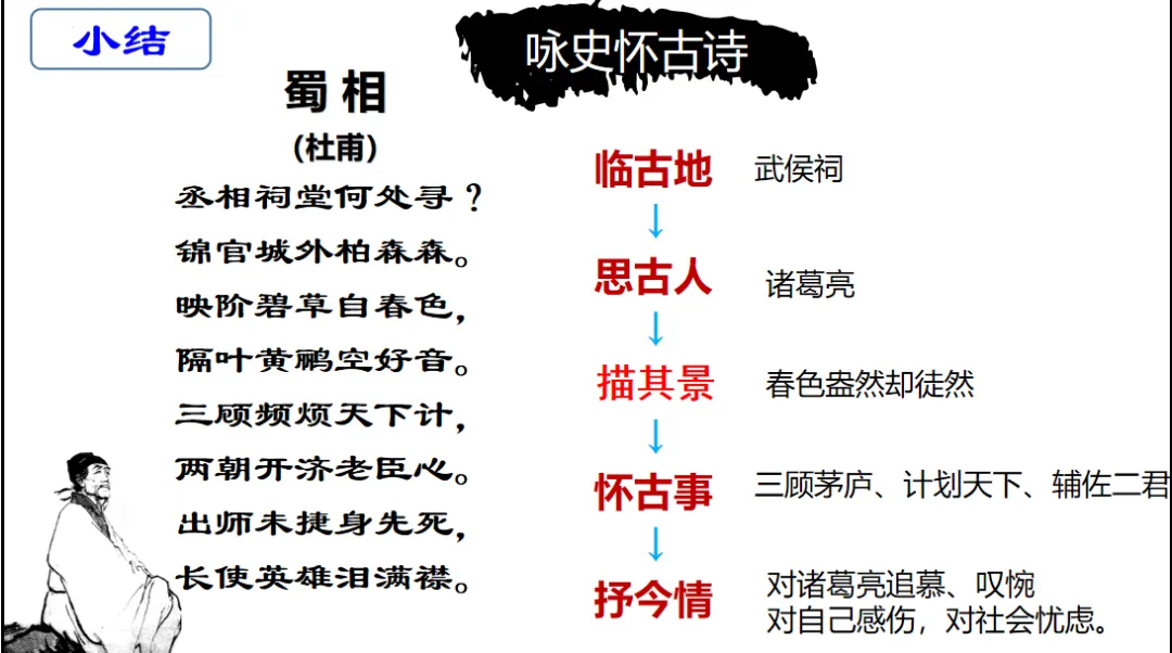 思考:“英雄”指的谁?此处的“泪”一语双关,既表达了对英雄诸葛亮的泪,也暗含着杜甫自身的泪。请你体会“英雄泪”中蕴含的复杂情感。