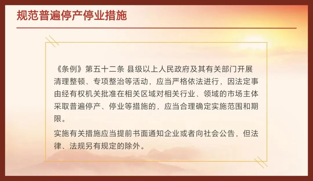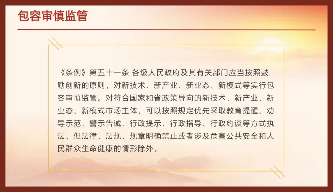 第二,法治化原则。这是优化营商环境的根本保障。法治能提供稳定的预期,是最大的确定性。《条例》致力于营造“稳定、公平、透明、可预期”的发展环境,其核心就是依法行政、依法监管、依法保护。无论是市场准入的清单管理、政务服务的标准公开,还是监管执法的程序规范、产权保护的强制措施限定,都体现了“法无授权不可为,法定职责必须为”的法治政府理念。特别是《条例》将政府诚信履约、政策连续性等纳入法制轨道,对于提振市场主体信心至关重要。国家《优化营商环境条例》第十四条明确规定,“严禁违反法定权限、条件、程序对市场主体的财产和企业经营者个人财产实施查封、冻结和扣押等行政强制措施”,《条例》在法治环境一章中对行政强制措施的审慎使用作出了进一步细化,正是对这一法治原则的严格贯彻。
