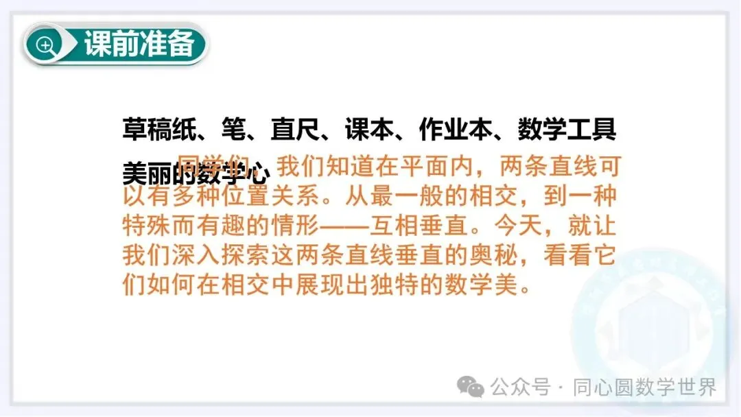 当前位置:首页>课件>人教版七年级下册数学教学课件《7.1.2 两条直线垂直》附PPT百度网盘下载