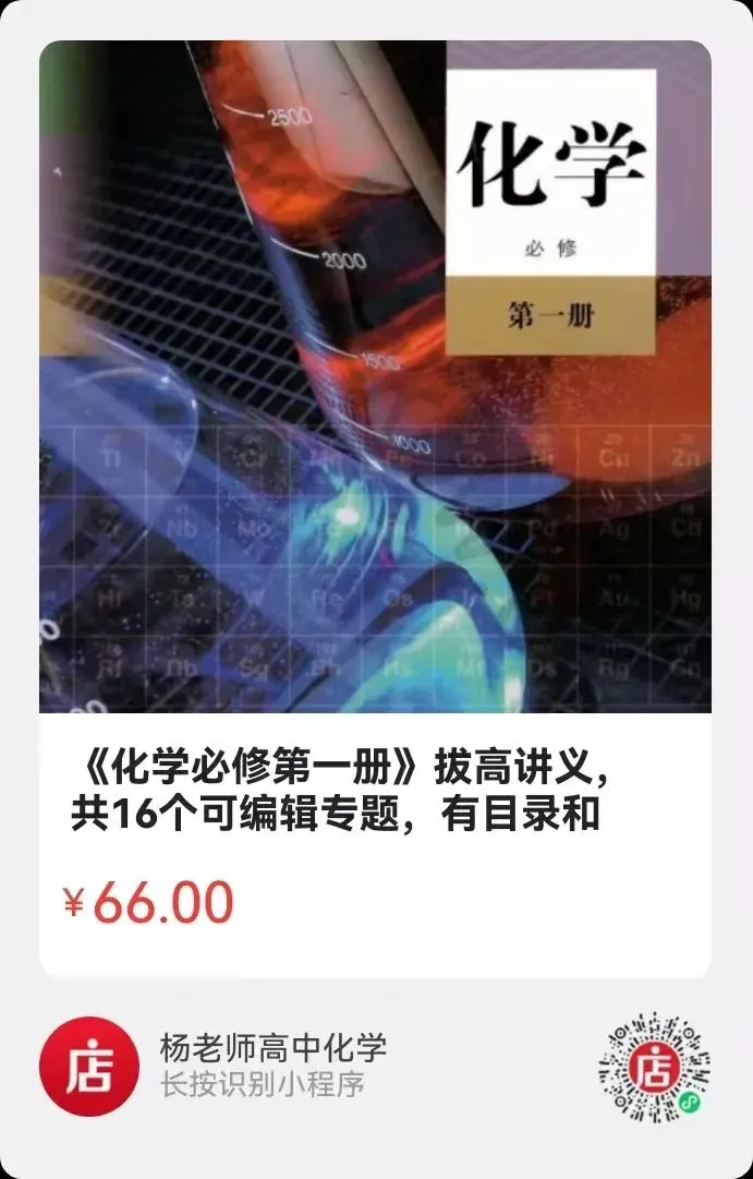 【致各位读者】:因为公众号平台改变了推送规则,如果想正常看到“杨老师高中化学”的推送,.点击手机右上角的“…”;选择“设为星标”。