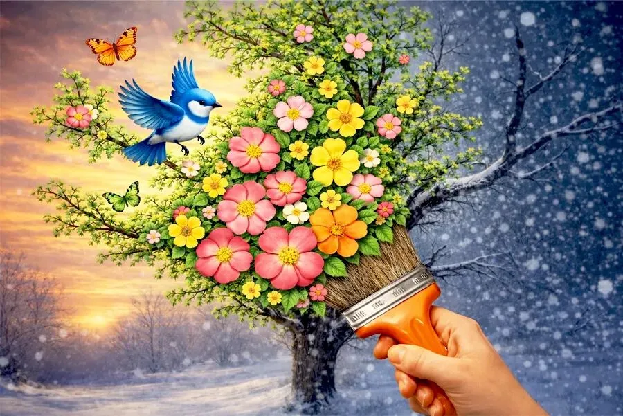小朋友们,冬天刚刚离开的时候,大自然就像还没有完全醒来:树枝是光秃秃的,天空是灰灰的,小动物躲在洞里睡觉,整个世界安安静静、凉飕飕的。可是春天正在悄悄地走过来,花朵慢慢开放,小鸟飞回来了,草地变绿了,空气也变得暖暖的。