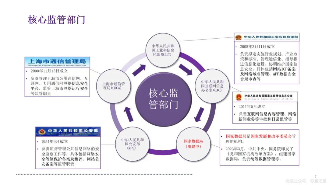 监管体系:形成 “五法一典” 国家法规框架,配套地方与行业政策,核心监管部门与合规要求一致,构建全维度监管体系。