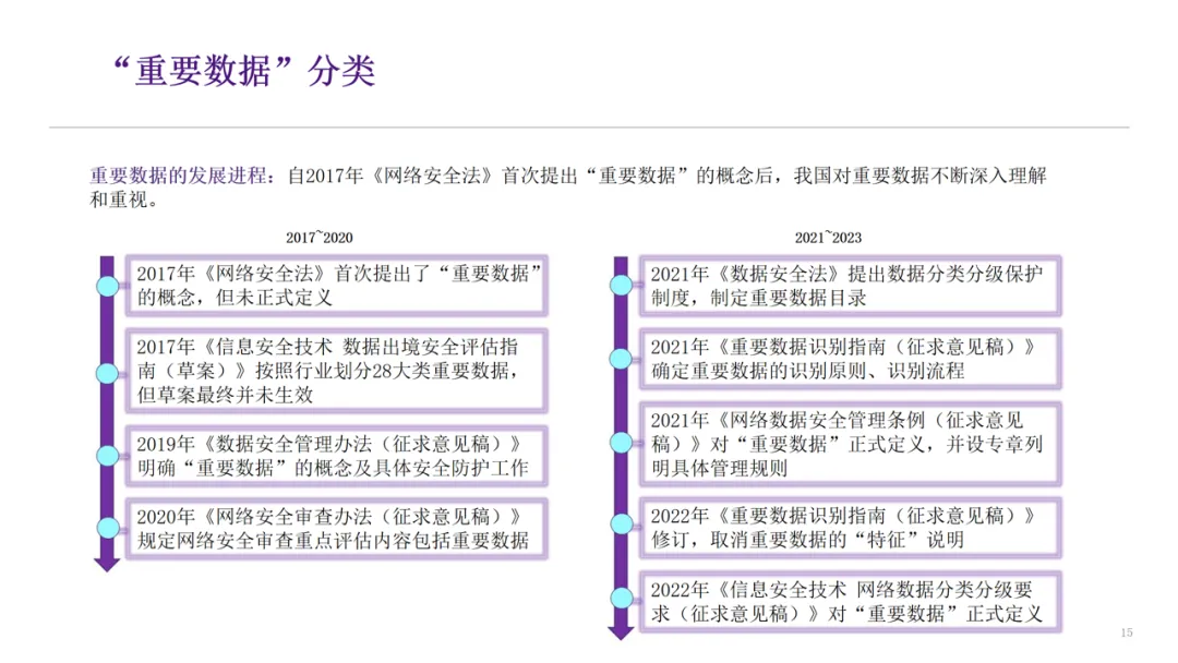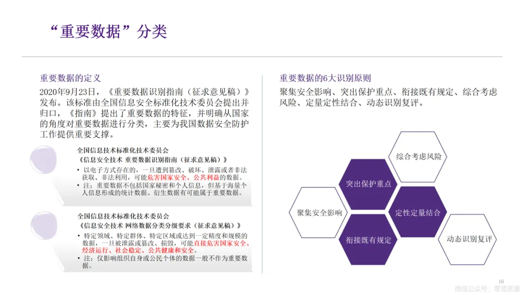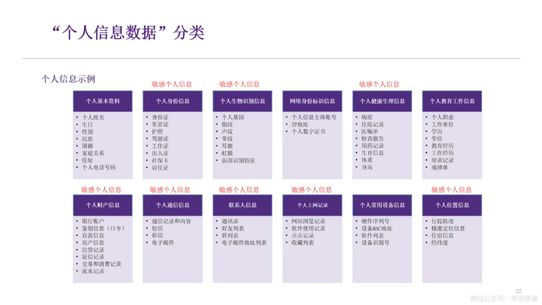 分类分级标准:从行业领域、数据对象、加工程度等多维度分类,按安全级别分为核心、重要、一般数据,个人数据则分为一般与敏感个人信息。