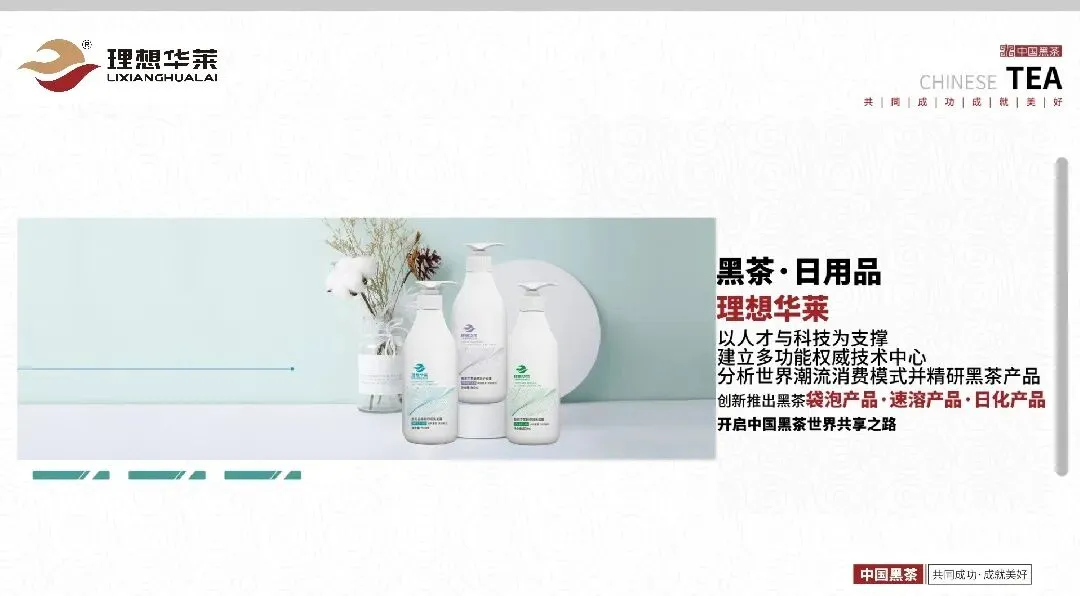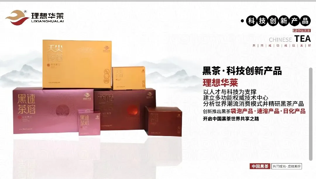 理想华莱以人才与科技为支撑,建立多功能权威技术中心分析世界潮流,消费模式并精研黑茶产品创新推出黑茶袋泡产品·速溶产品·日化产品开启中国黑茶世界共享之路,共同成功·成就美好