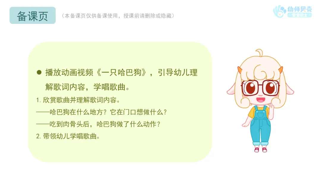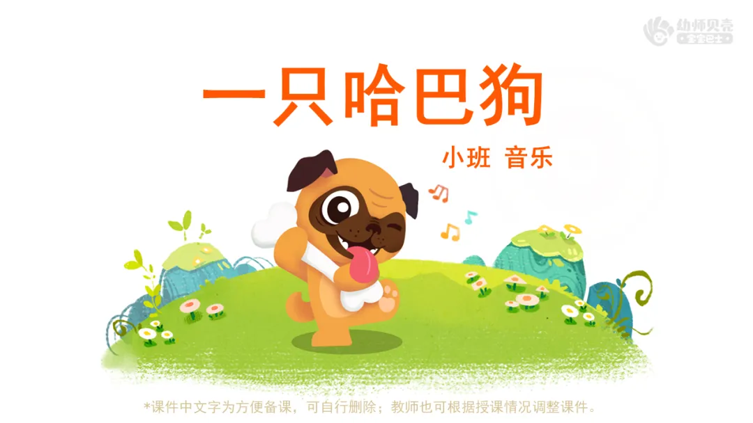l课件准备:“哈巴狗”音效及图片;《一只哈巴狗》动画视频;《一只哈巴狗》歌曲音频。