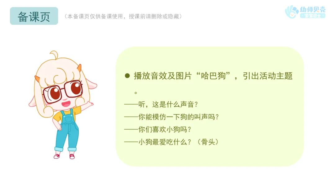 l播放音效及图片“哈巴狗”,引出活动主题。