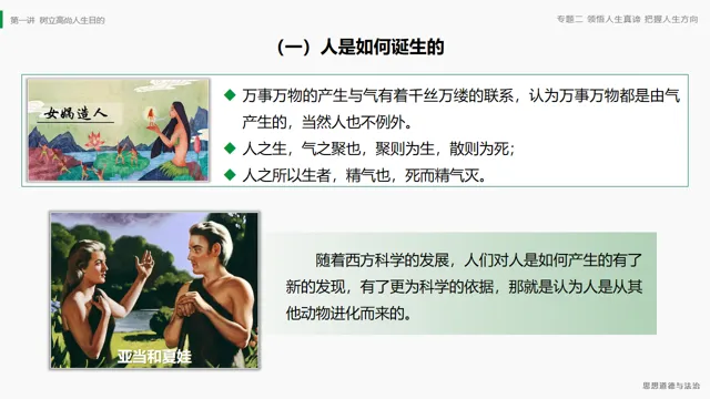 刚才几位同学其实就人是如何产生的都发表了自己的观点和间接,很多都是我们之前在学习的过程中接触到的,或者是听到,道听途说。