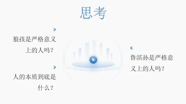 【P12】案例分享完了之后,我们思考这些问题:狼孩是严格意义上的人吗?鲁滨孙是严格意义上的人吗?人的本质到底是什么?我们给各位同学几分钟时间去思考这个问题,之后我们请同学来回答这些问题。