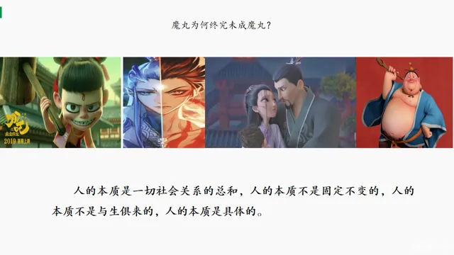 2019年有一部动漫电影叫《哪吒之魔童降世》;2025年哪吒第二部上映名字是《哪吒之魔童闹海》,两部电影在票房上可以说都取得了巨大的成功,里面当之无愧的第一男主是哪吒。在第一步魔童降世中的设定,大家都知道哪吒是魔丸,敖丙是灵珠。按照我们一般的理解魔童降世之后是毁灭世界、做一些天怒人怨,甚至是违背人伦的一些事情的。但是,到目前为止在上映的两部影片影片当中,哪吒虽然做过一些出格的事情,但是和毁灭世界、搞得天怒人怨好像是挂不上边的,按照宿命论来说,魔丸就是魔丸,终究要成为魔丸。但是,魔丸终未成魔丸,这是为什么?有哪些同学思考过这个问题,有哪位同学来回答一下这个问题?现在我们给大家两分钟时间来思考一下这个问题。