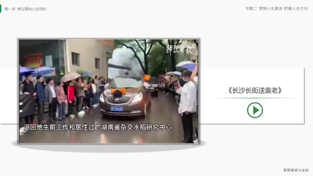 【P3】我希望,通过今天的课程,大家能够更加清晰地认识到自己的人生方向,找到属于自己的那份热情和动力。记住,每个人的人生都是独一无二的,都有无限的可能等待着我们去发掘和实现。本节课的内容,主要分为三部分:一、什么样的人生更有价值?二、怎样抵制错误人生观?三、如何成就出彩人生?也就是在实践中如何创造有意义的人生?