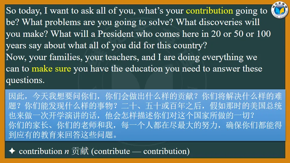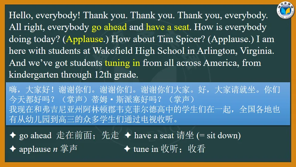 今天小维和大家分享一个非常鼓舞人心的英文演讲,这是美国前总统奥巴马几年前在美国弗吉尼亚州阿灵顿韦克菲尔德高中给全美中小学生上的“开学第一课”。