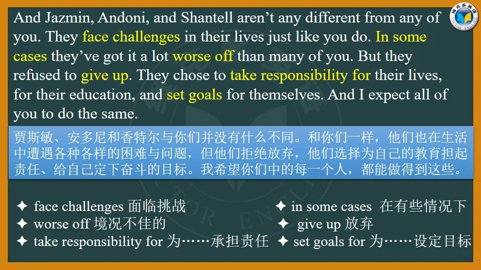 奥巴马通过自身的经历,还有其他年轻人的故事,鼓励孩子们勇于承担责任,追求梦想。