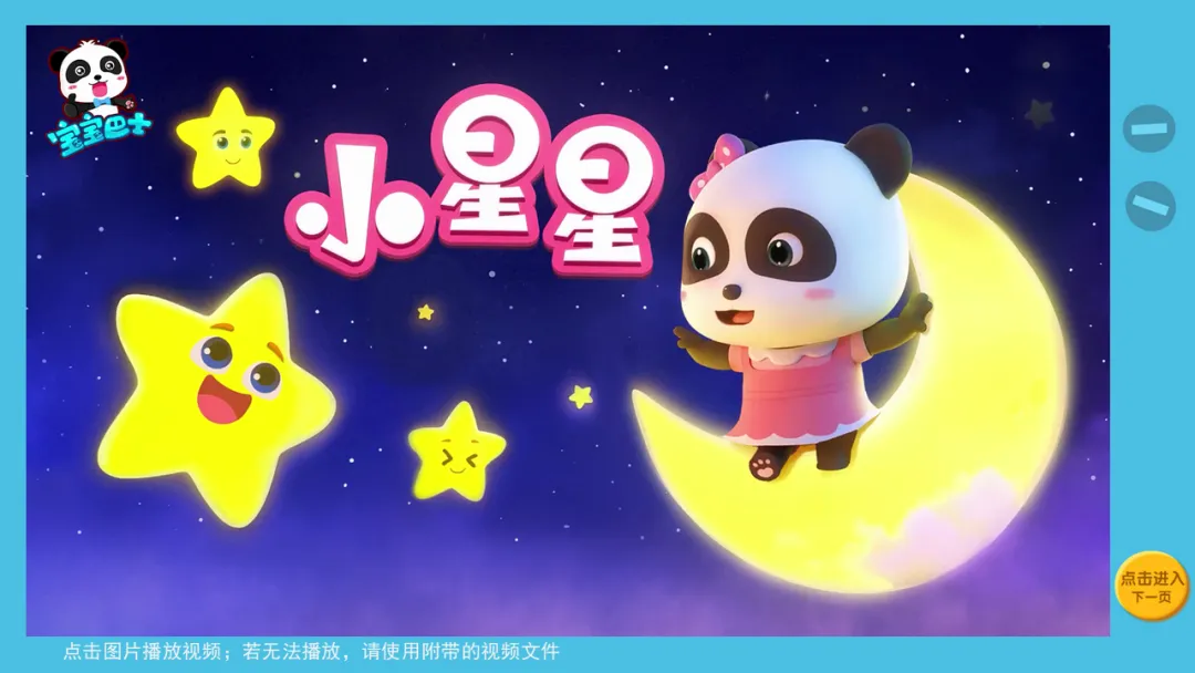 l播放歌曲视频《小星星》,激发幼儿活动兴趣。
