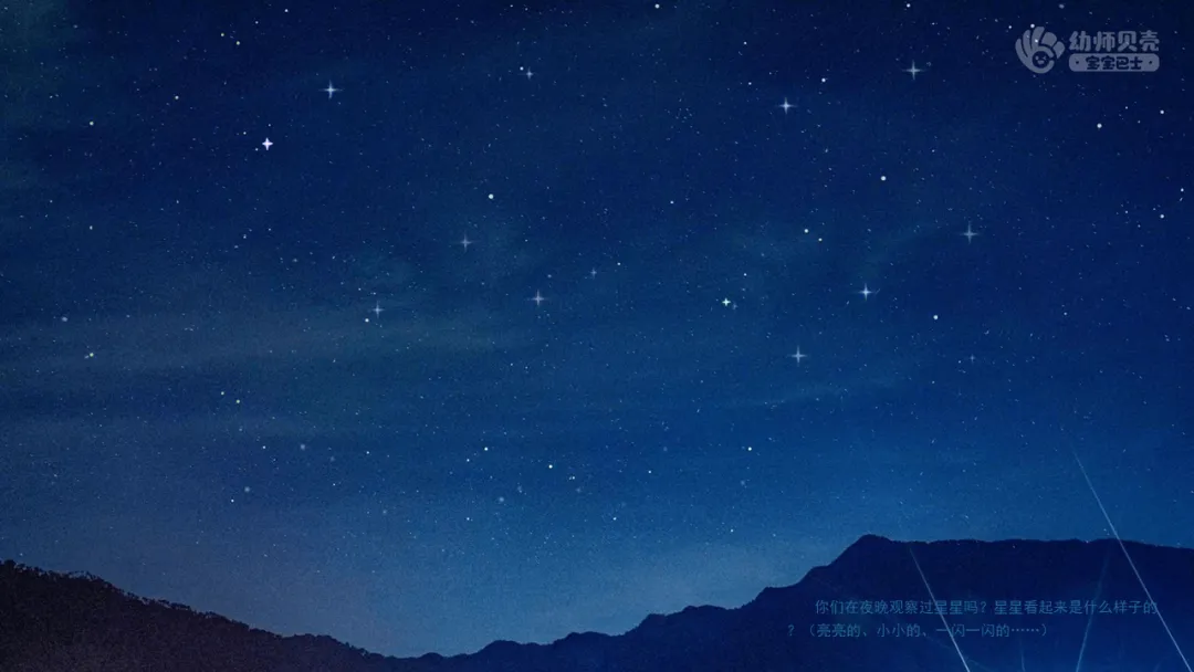 ——你们在夜晚观察过星星吗?星星看起来是什么样子的?(亮亮的、小小的、一闪一闪