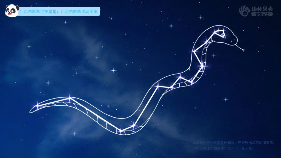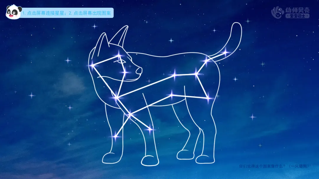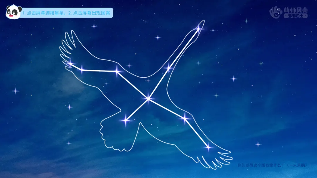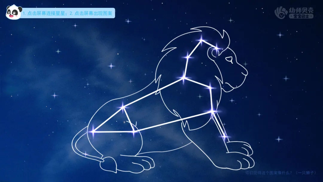 ——如果我们把一些星星连起来,还能连出漂亮的图案哦。你们觉得这个图案像什么?