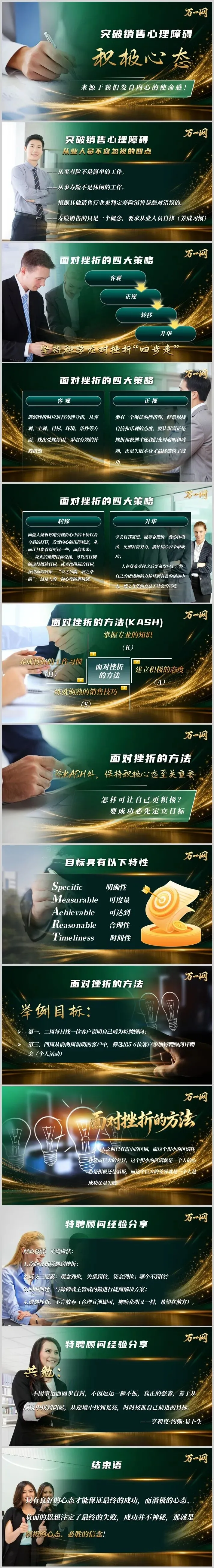 课程尾声的结语振聋发聩:“只有良好的心态才能保证最终的成功,消极的心态注定失败。”销售的本质,是一场与自我的博弈——战胜恐惧、破除自卑、超越自满,才能在拒绝中成长,在挫折中突围。