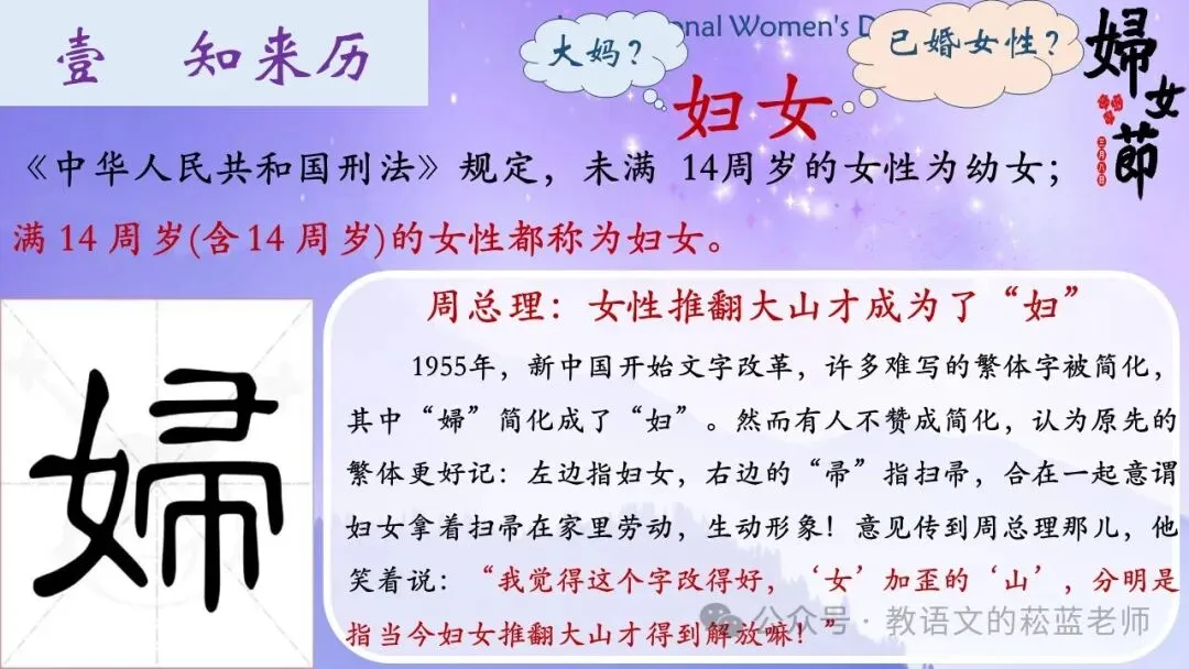 3、解释妇的含义: