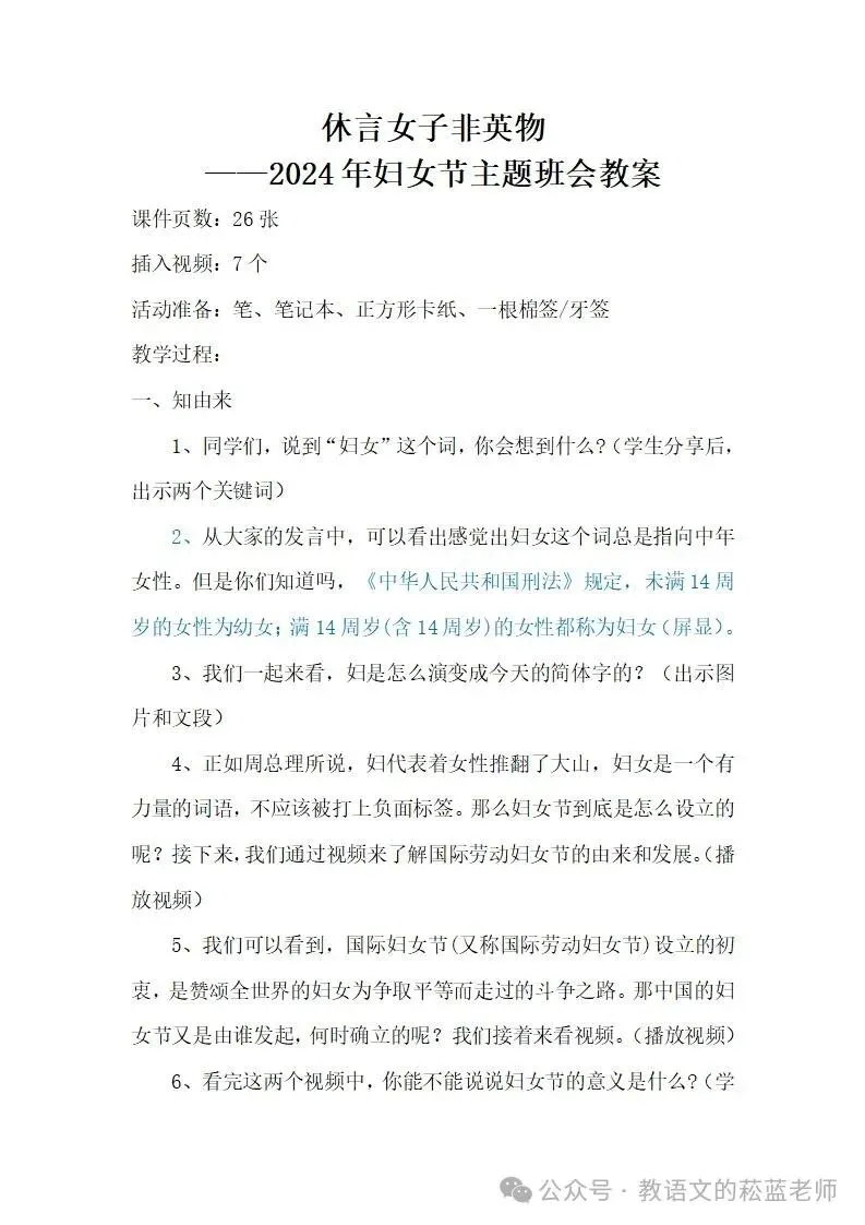 6、讨论总结妇女节的意义