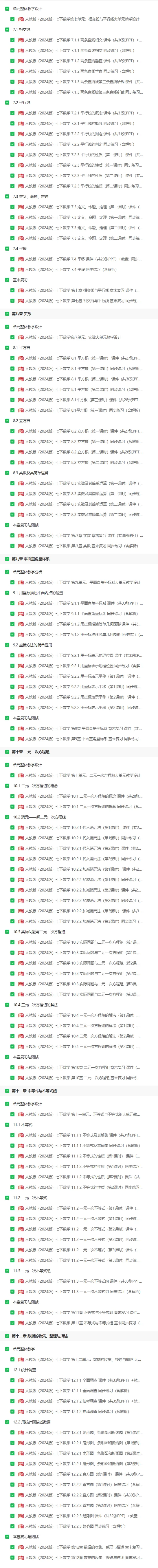 当前位置:首页>课件>【大单元教学】初中数学七年级下册 课件+教案+学案+练习+单元整体教学设计