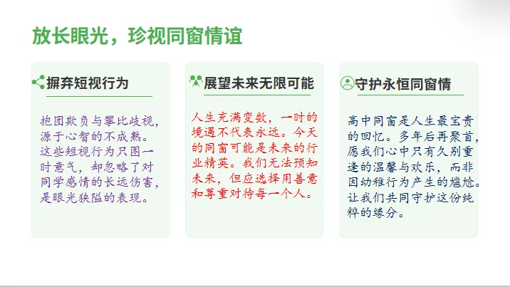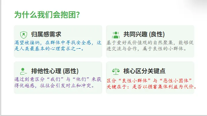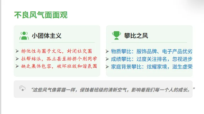 因此开一节班会课来与学生共同探讨如何打破班级中可能存在的隔阂与不良风气,与学生讲清楚利弊,就非常重要了。