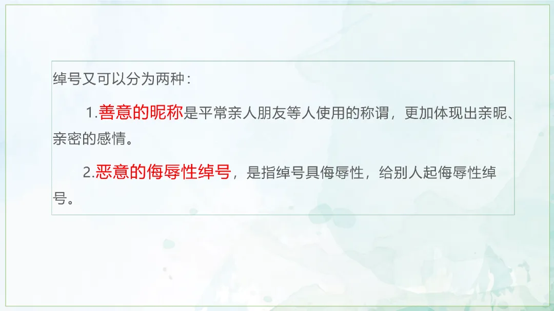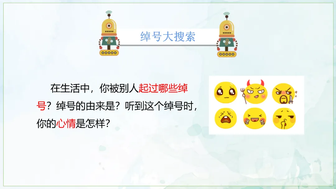 【通用】2026春新版文明礼仪主题班会课件PPT:“关于绰号那些事儿”(课件+教案,电子版可编辑),部分内容由PPT展示可见。