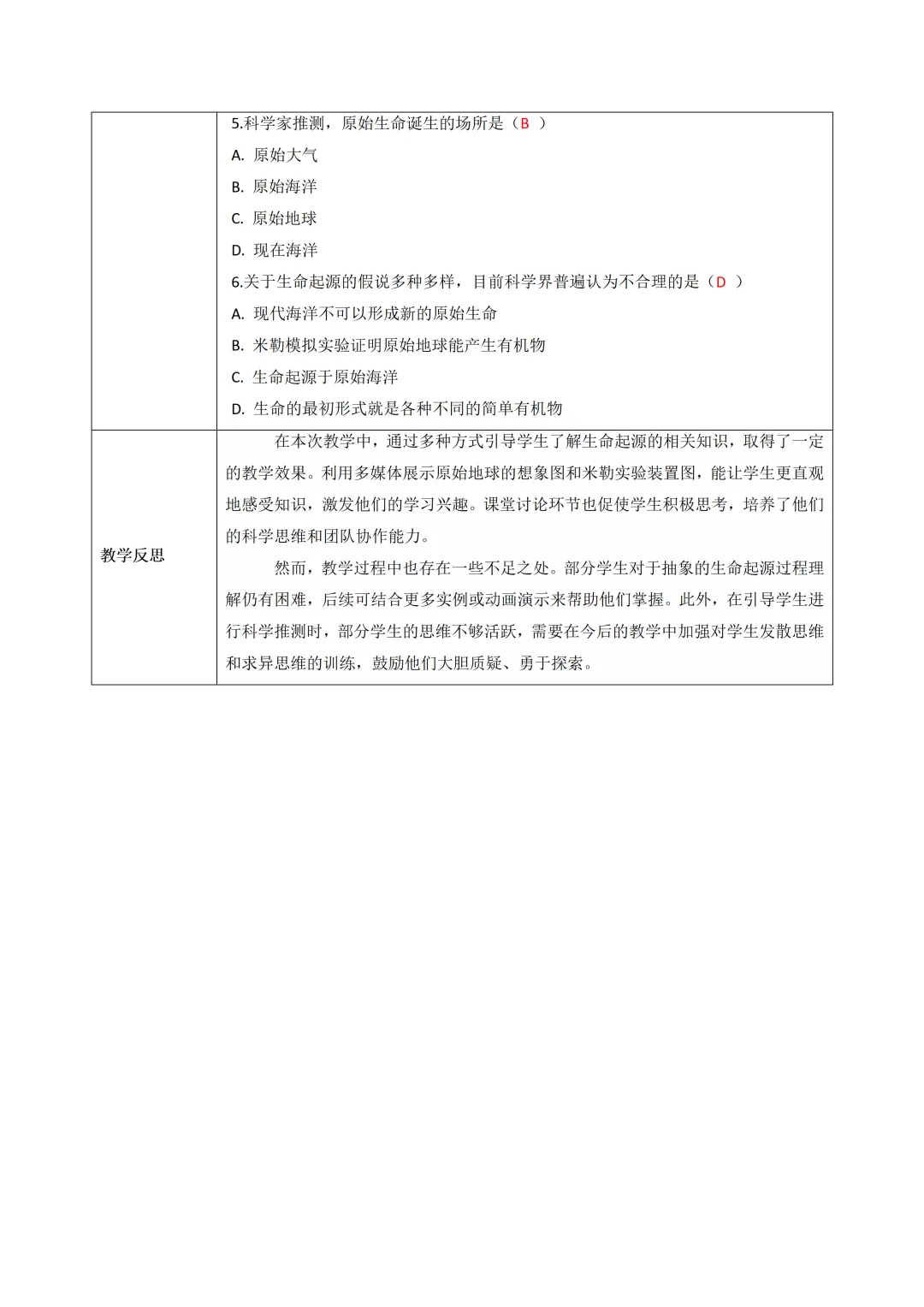新教材 人教版生物八年级下册教案含反思+课件+分层作业