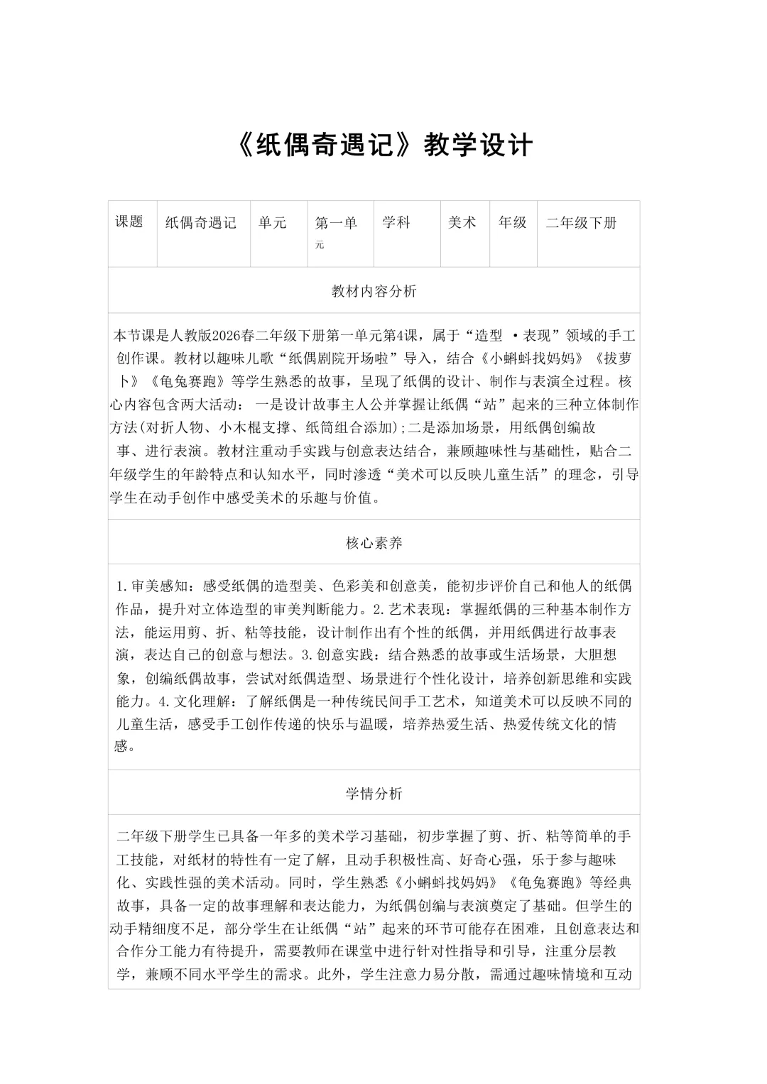 新改版 美术二年级下册核心素养教案+课件(人教版26春)