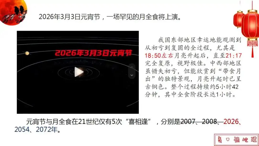 >“世纪级巧合”的元宵节月全食,全面解读课件给大家准备好了!