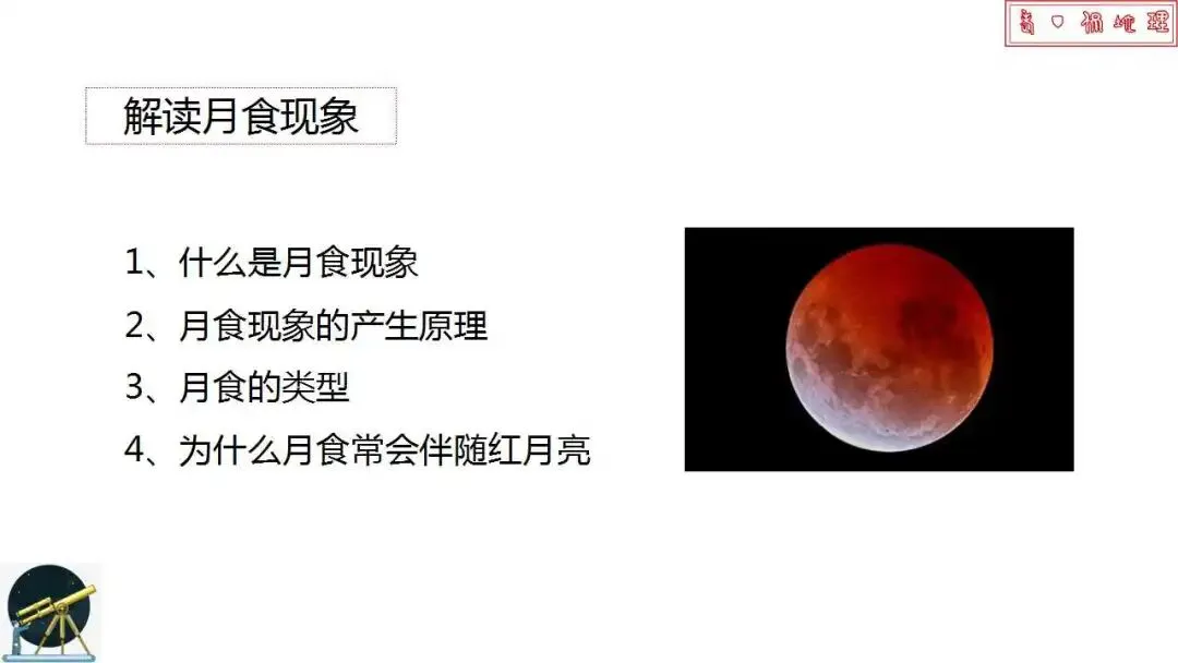 ,原因是什么呢?这次月全食的详细解读课件给大家准备好了!