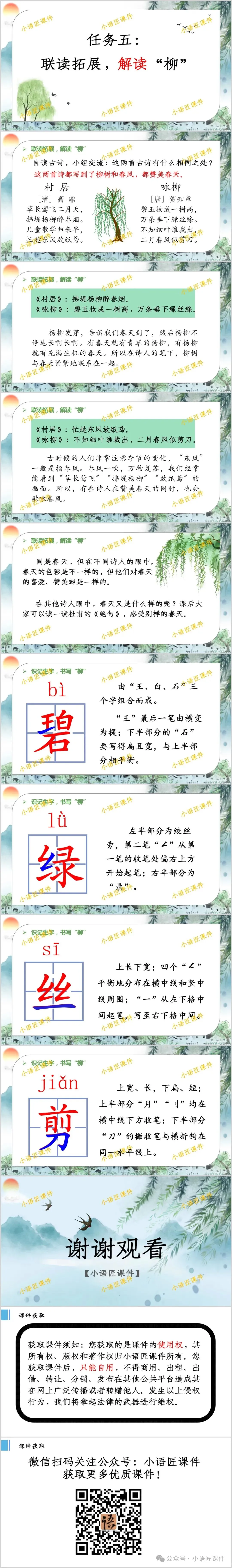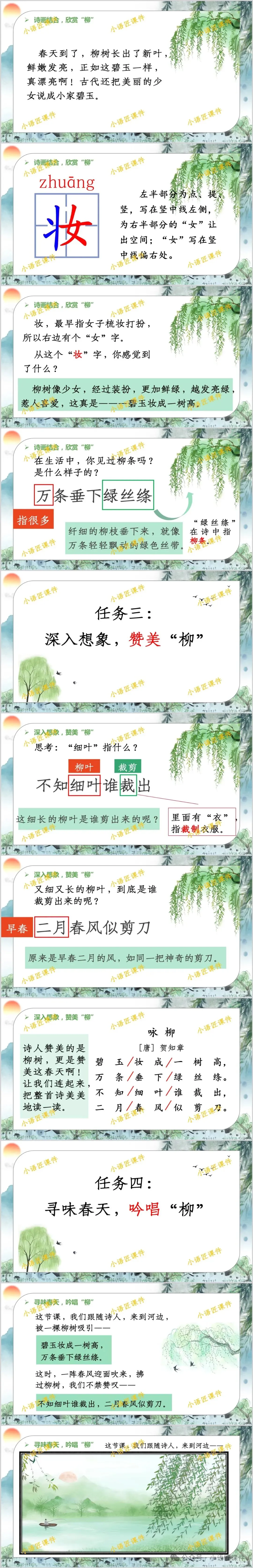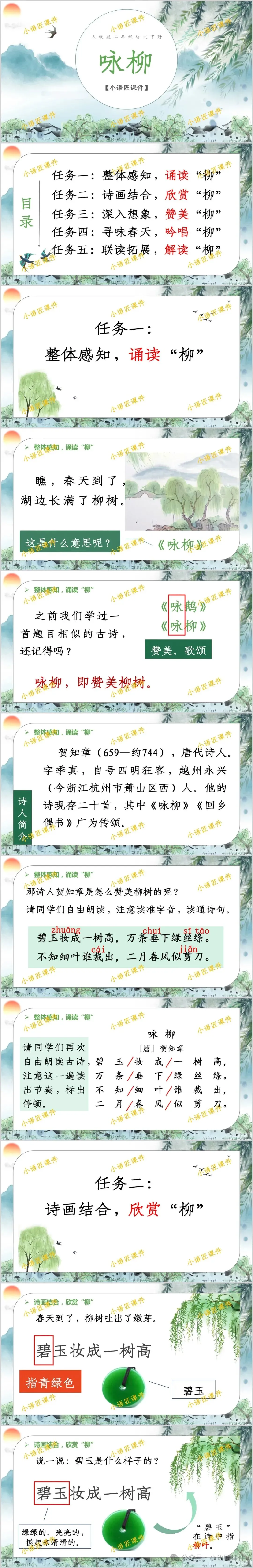 今天给大家分享二年级下册古诗《咏柳》的独家课件。