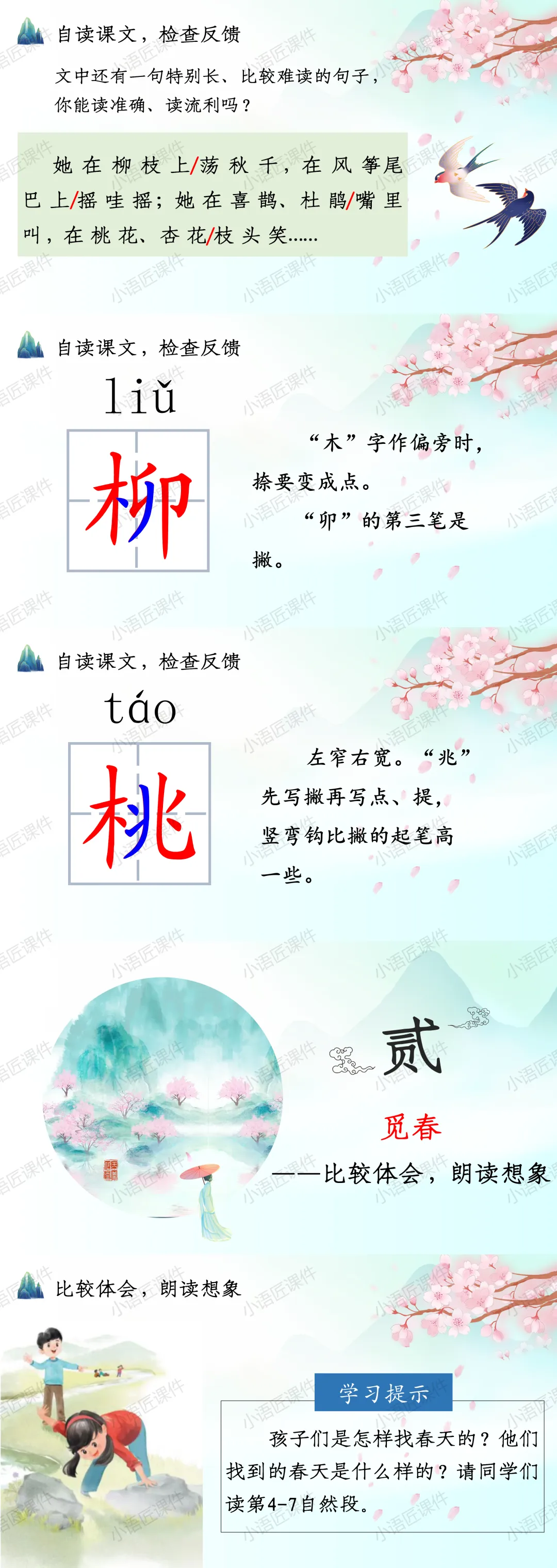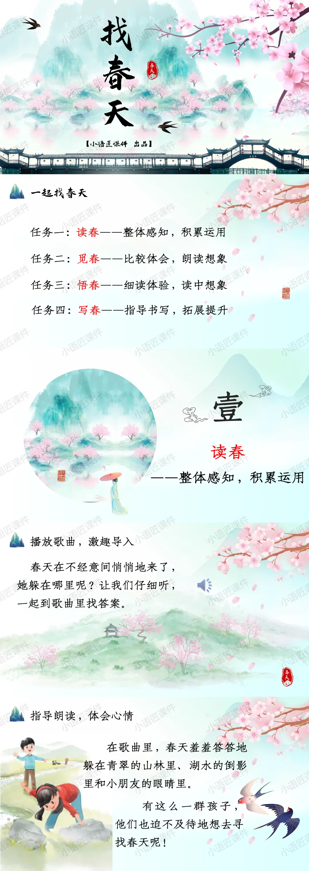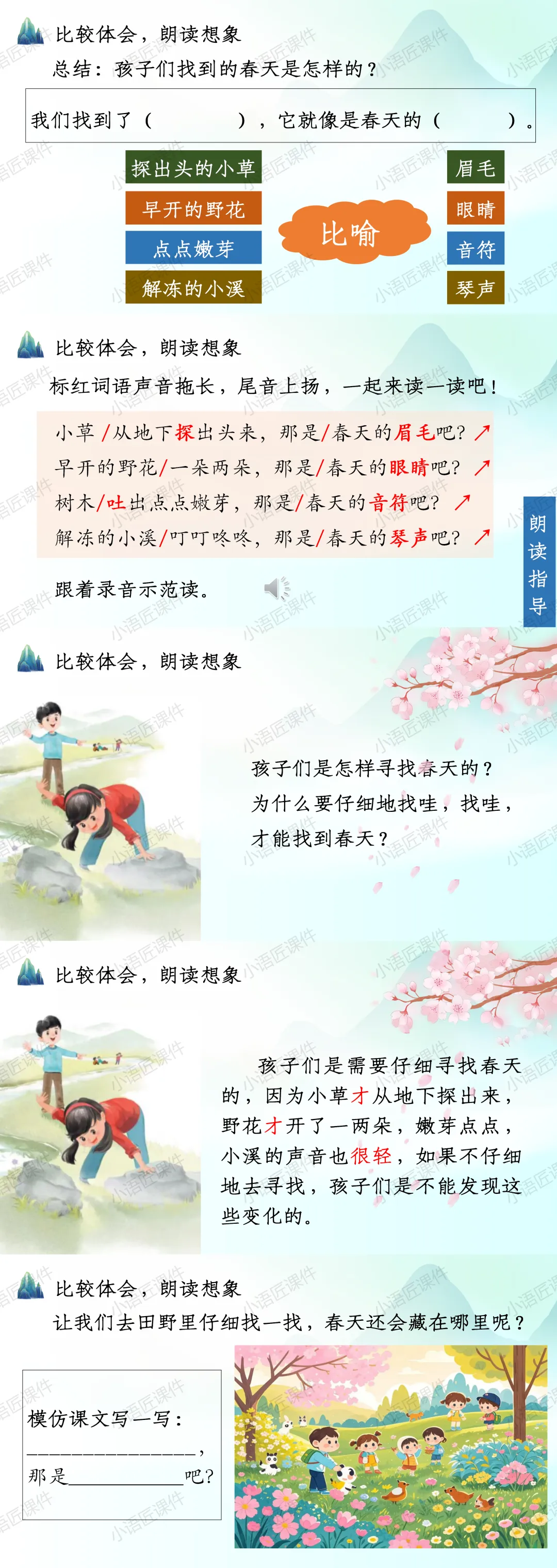 今天给大家分享二年级下册《找春天》的独家课件。