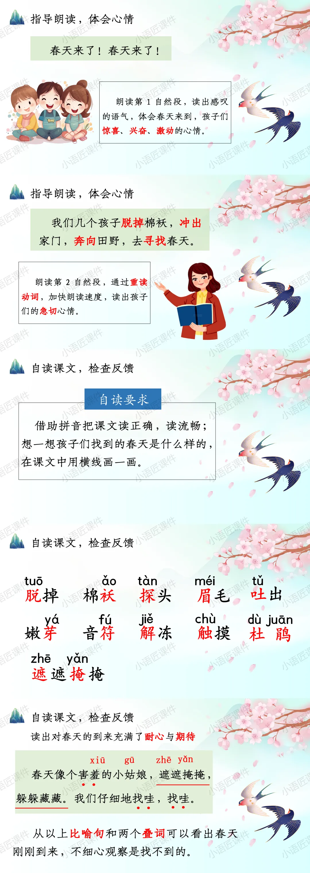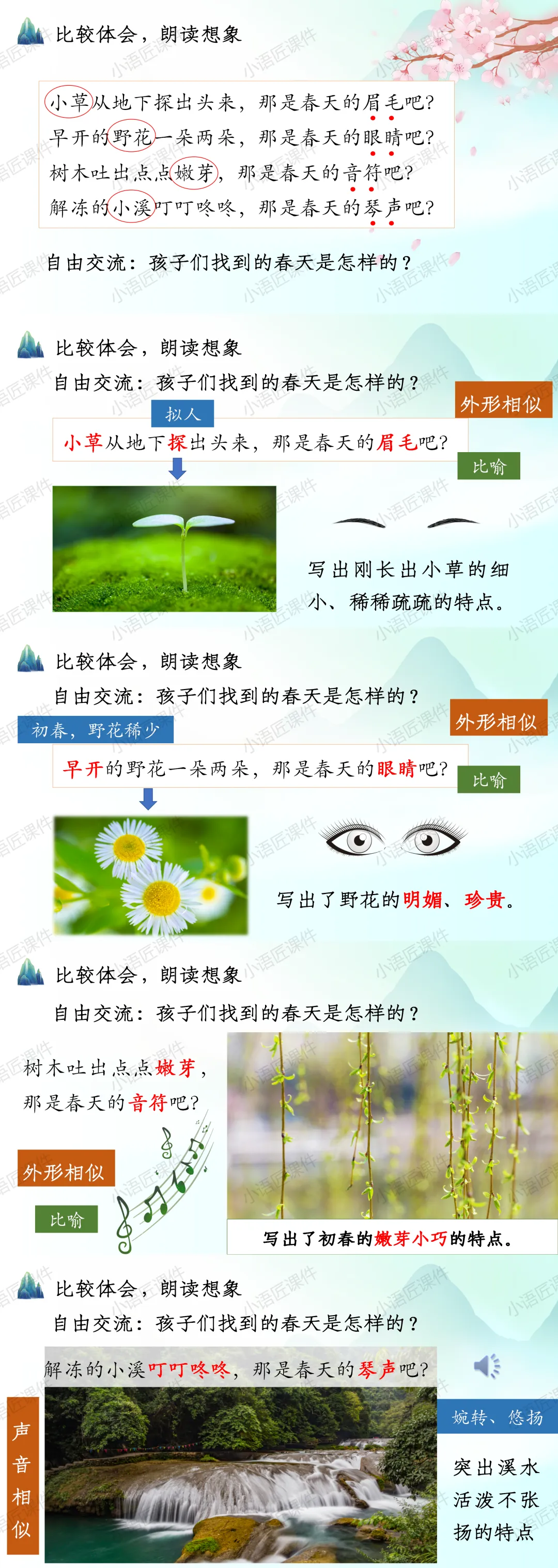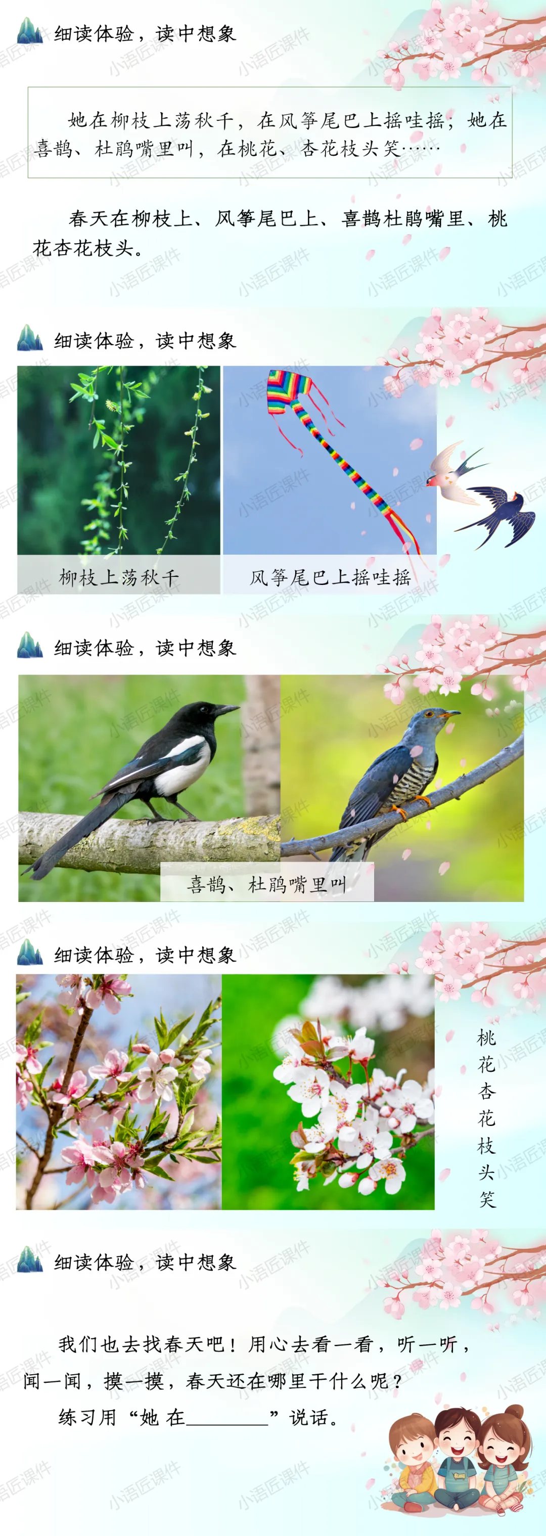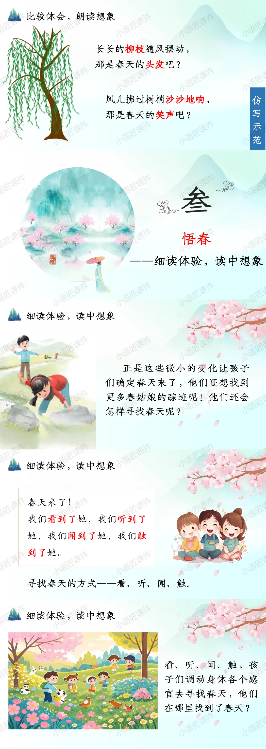 今天给大家分享二年级下册《找春天》的独家课件。