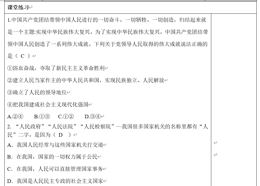 2025-2026学年八下道法教材问题栏目和导行、单元思考答案