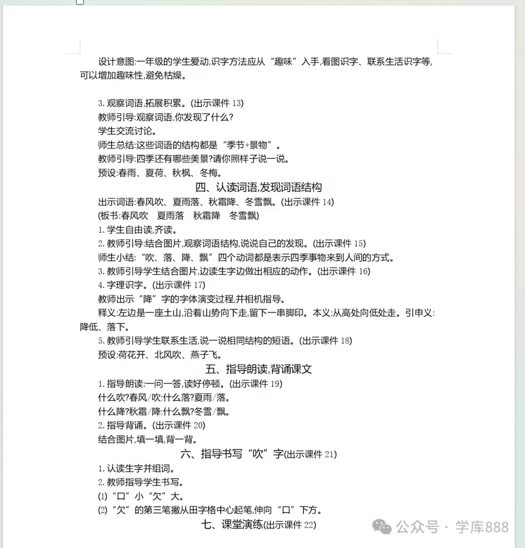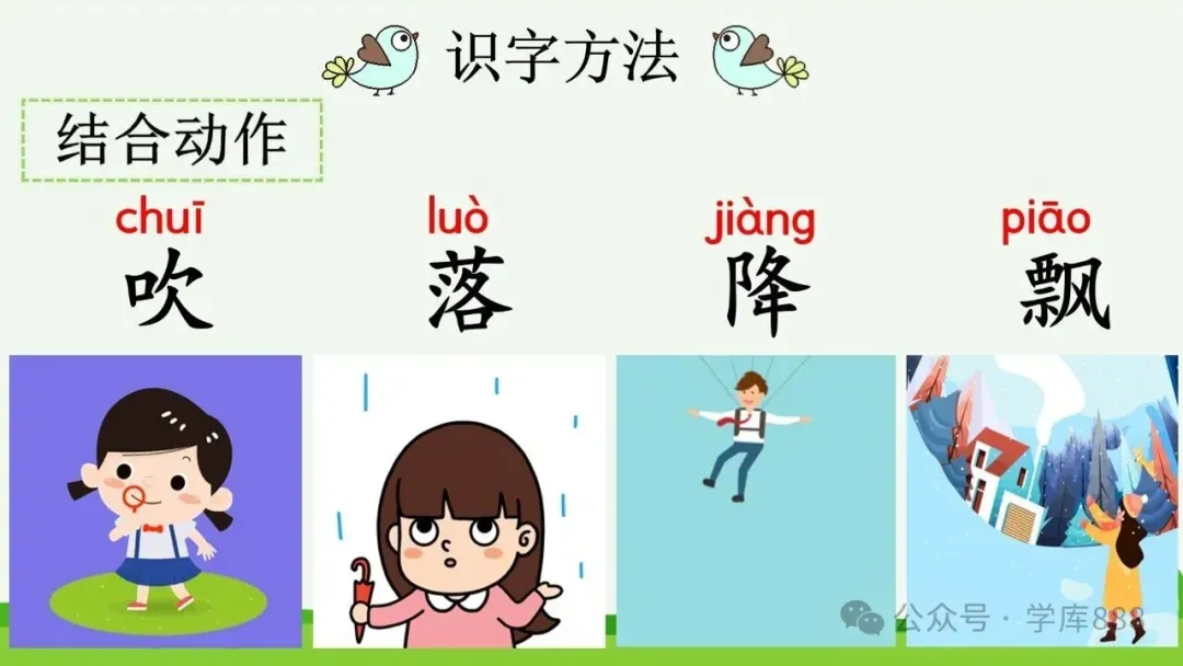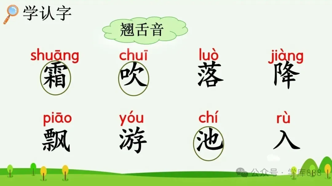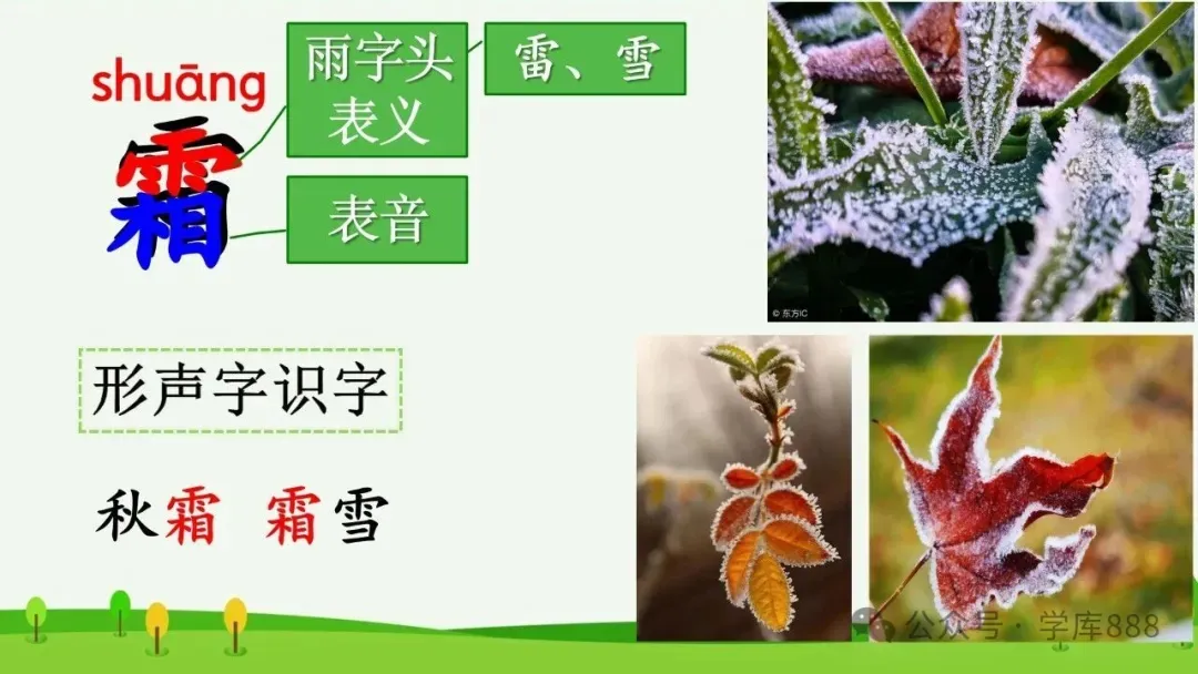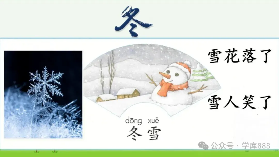 1.认识“霜、吹”等8个生字和雨字头1个偏旁,会写“春、冬”等6个字。