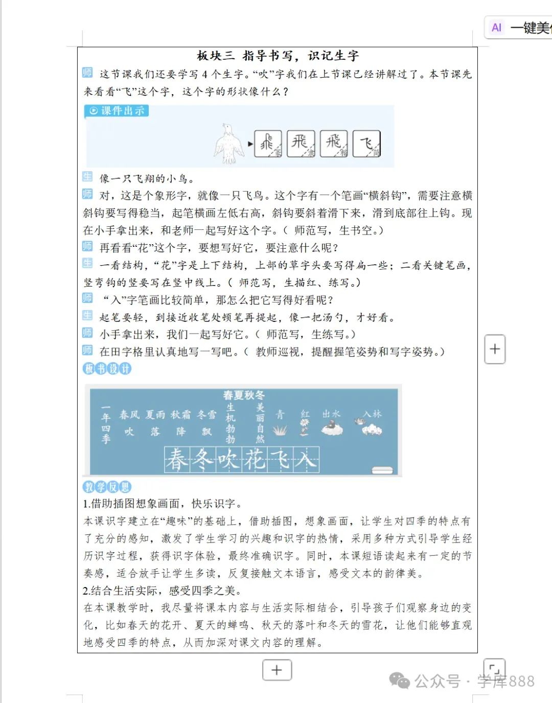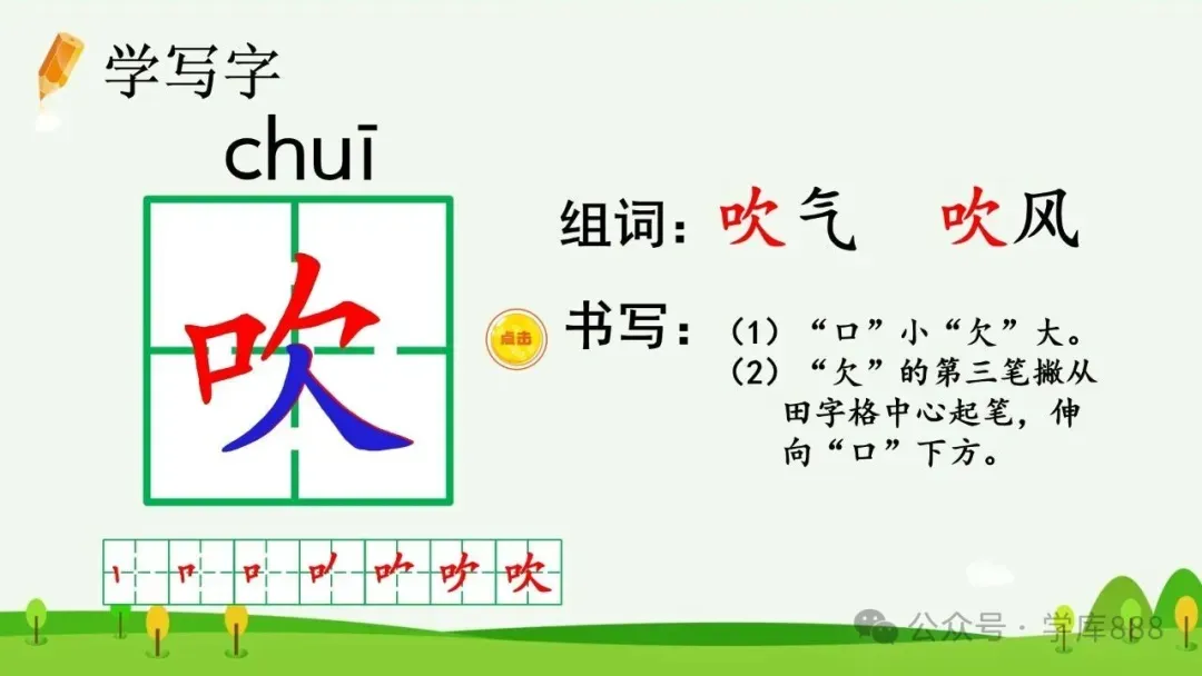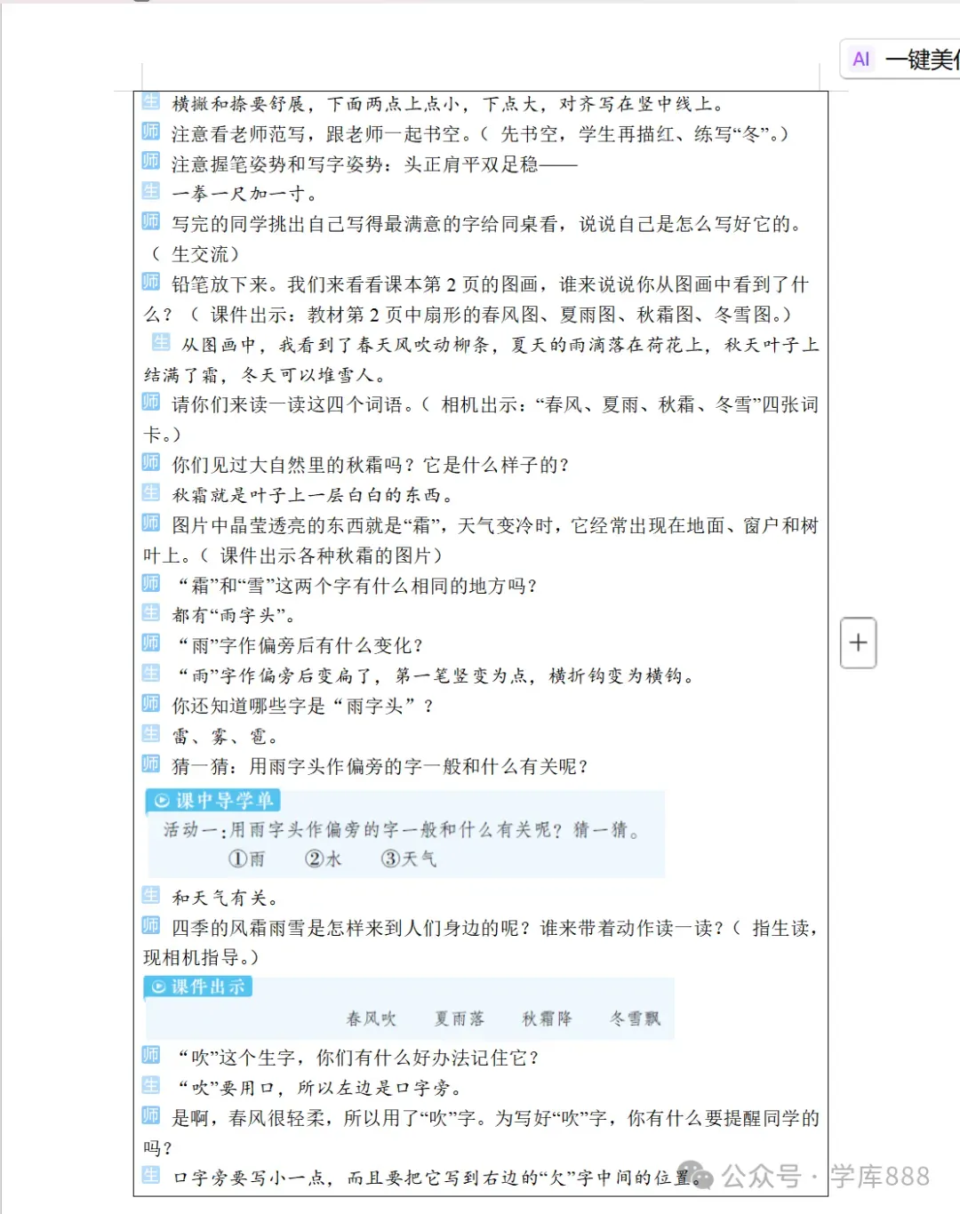 1.认识“霜、吹”等8个生字和雨字头1个偏旁,会写“春、冬”等6个字。