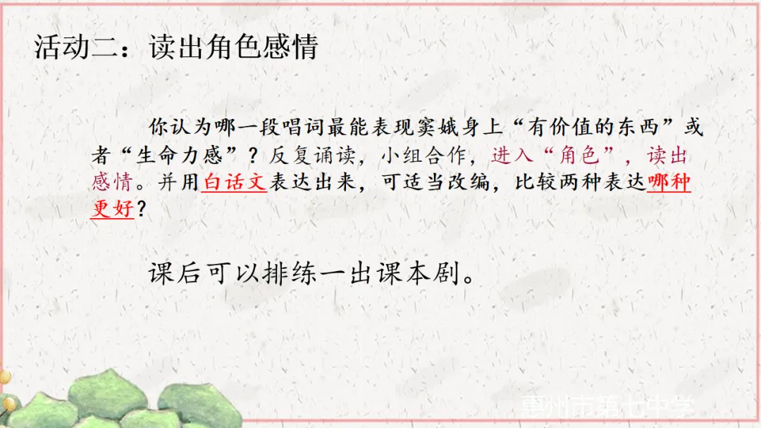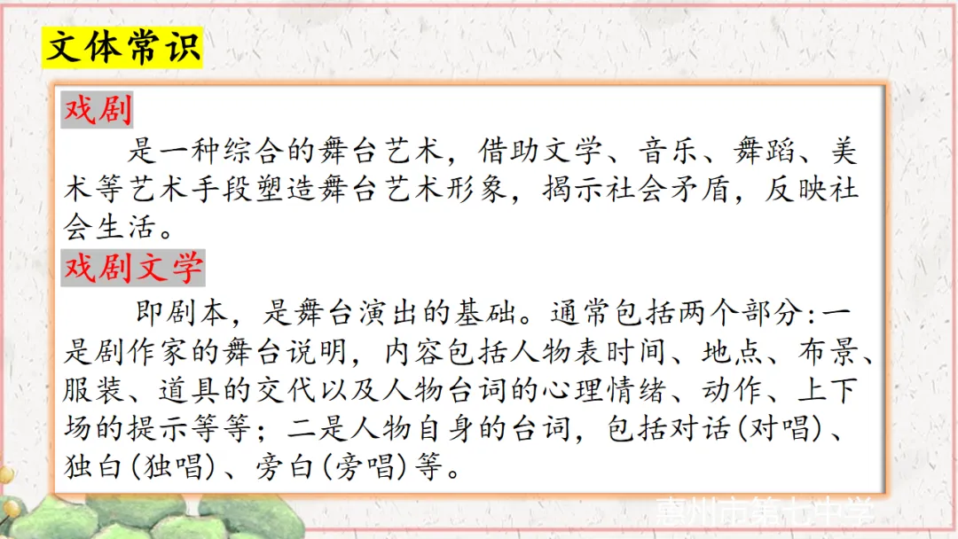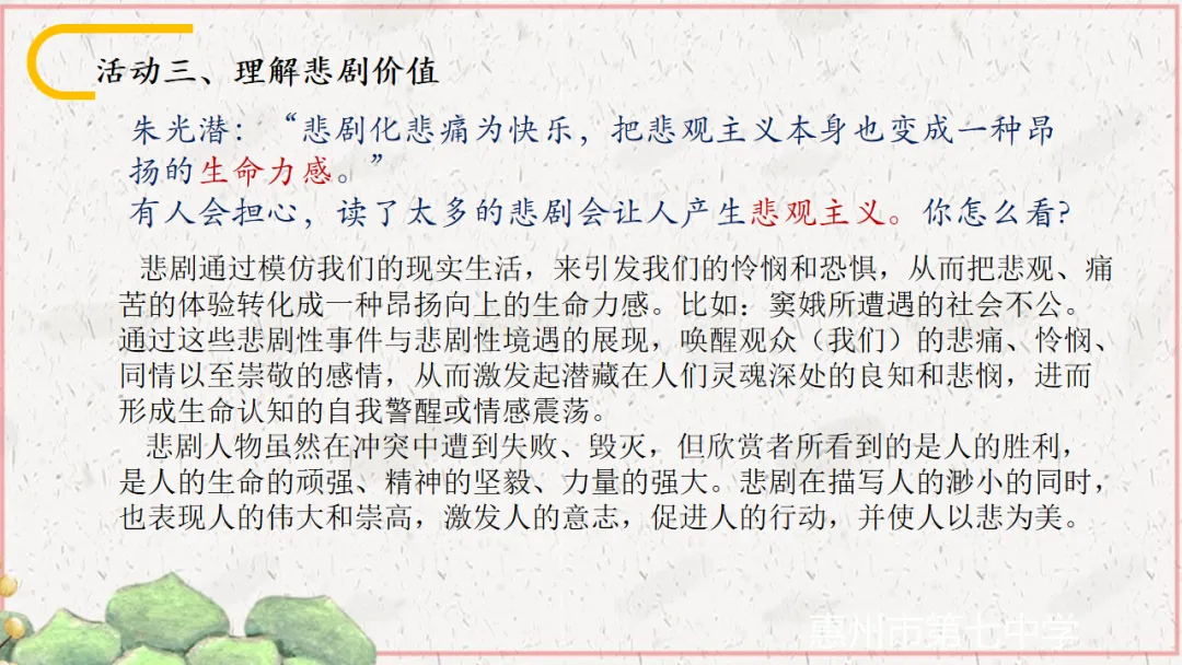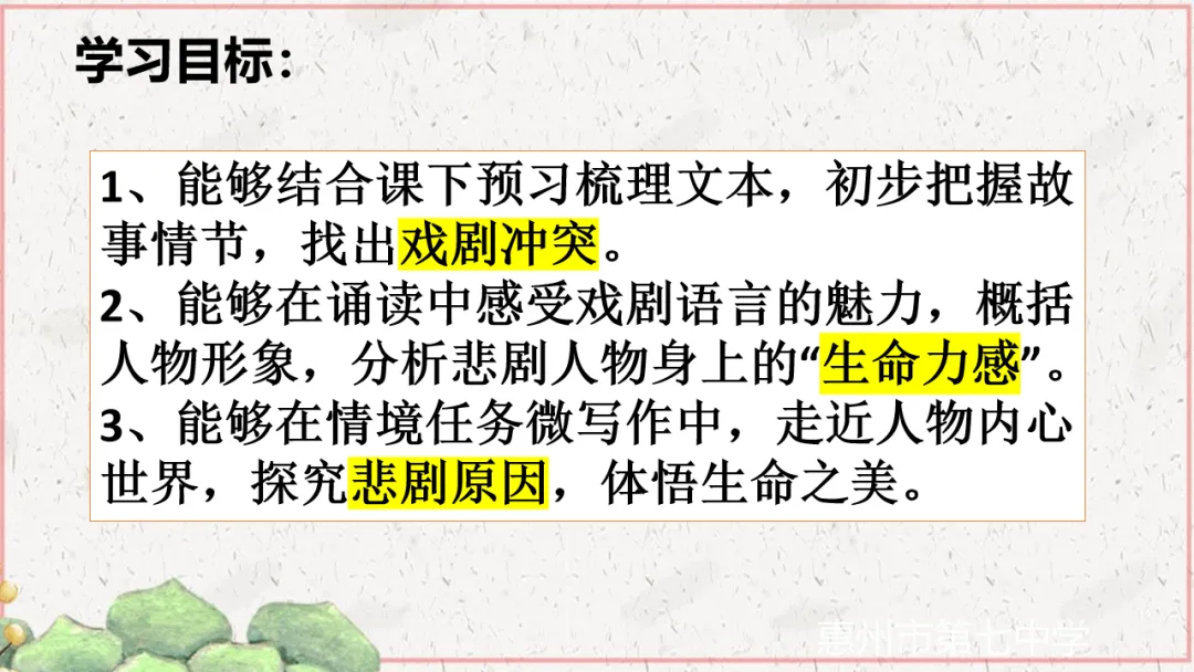 2.能够在诵读中感受戏剧语言的魅力,概括人物形象,分析悲剧人物身上的“生命力感”。