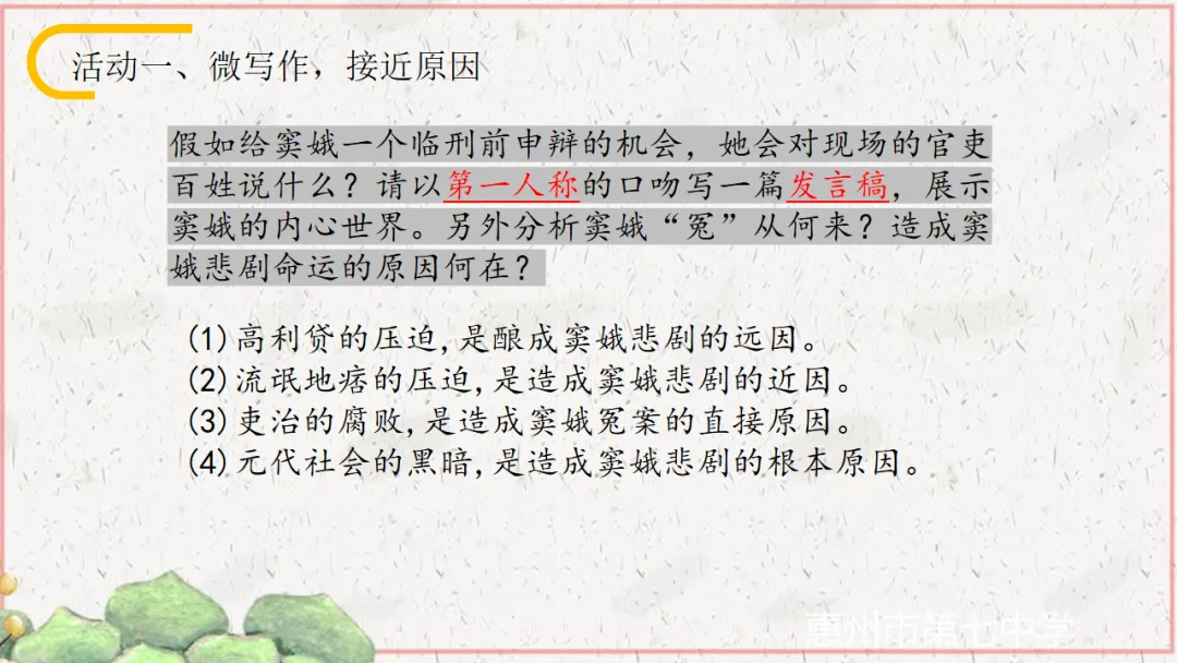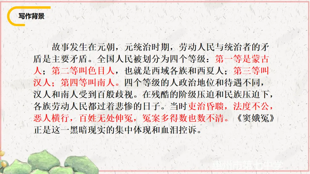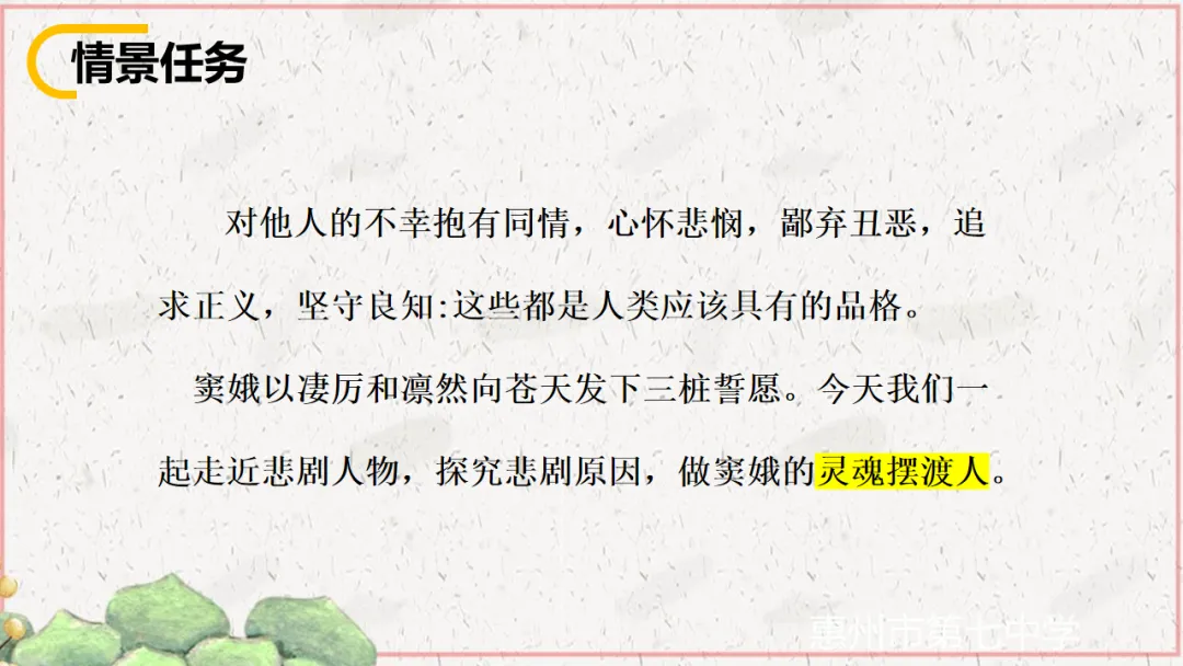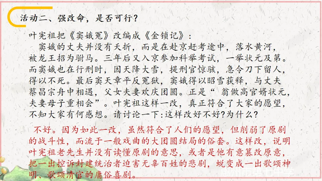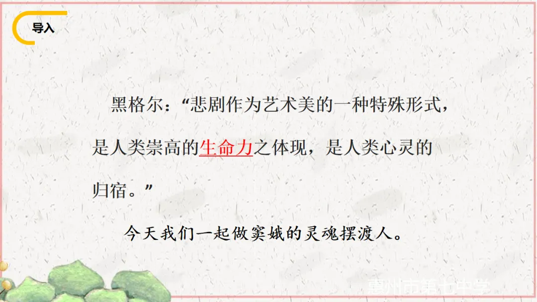 黑格尔:“悲剧作为艺术美的一种特殊形式,是人类崇高的生命力之体现,是人类心灵的归宿。”今天我们一起做窦娥的灵魂摆渡人。