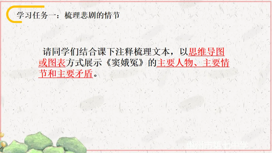1.能够结合课下预习梳理文本,初步把握故事情节,找出戏剧冲突。